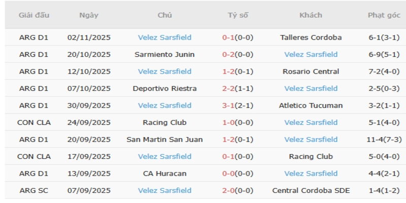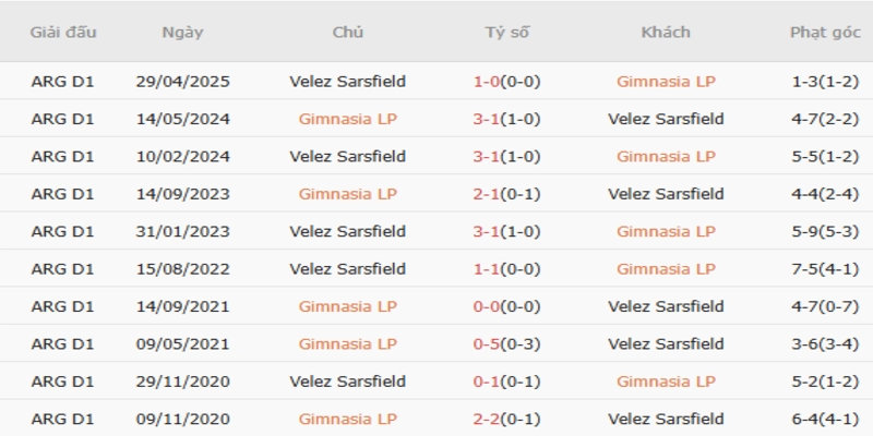 Theo thống kê các trận đấu gần đây của Velez Sarsfield là số lượng quả phạt góc của họ – 22 trong năm trận gần nhất phản ánh áp lực tấn công liên tục trong suốt các giai đoạn của trận đấu, so với bảy quả phạt góc của Gimnasia LP trong cùng kỳ.